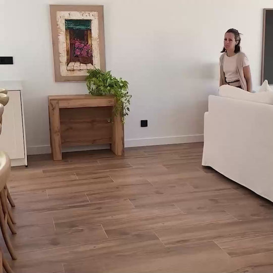 Mesa Consola Extensible Easy – De 45 cm a 305 x 90 cm – Roble Rústico